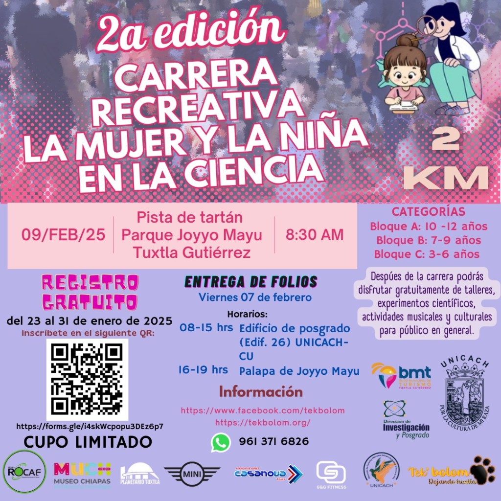 Tek’bolom agradece a los asistentes en la 2a Carrera Recreativa «La Mujer y la Niña en la Ciencia» por su participación. Gracias a las instituciones educativas, autoridades y organismos municipales, grupos sociales, a los patrocinadores y al parque Joyyo Mayu por su invaluable apoyo y colaboración. Esperamos contar con su participación en las siguiente edición.