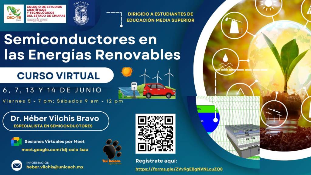 Junio 6, 7, 13 y 14. Se les invita al Curso Virtual «Semiconductores en las Energías Renovables».