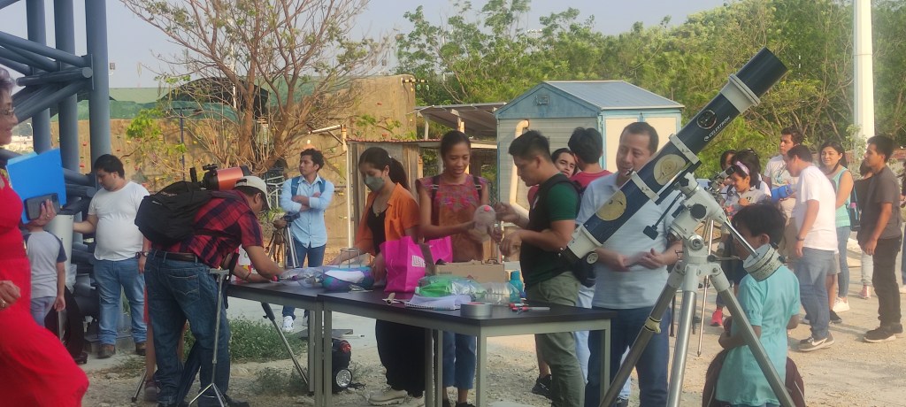 Colaboradores, miembros del Club Espacial de Chiapas, realizaron actividades en el Parque de Villa Corzo, el domingo 13 de abril.