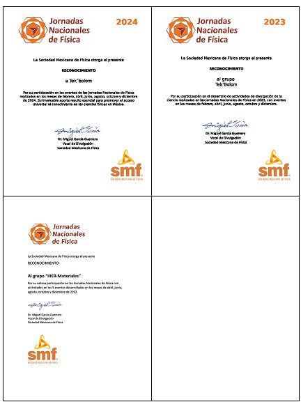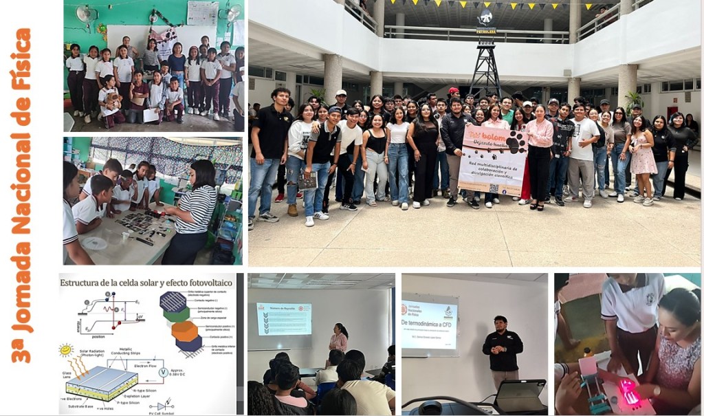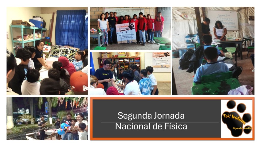 En la 2ª Jornada Nacional de Física, celebrada del 7 al 13 de abril, miembros de la red Tek’bolom realizaron actividades en el Centro educativo UNITY, la Escuela Secundaria de Santa Inés Bella Vista, en Berriozábal y en la Escuela Primaria del Estado Enrique Rodríguez Cano, turno vespertino.