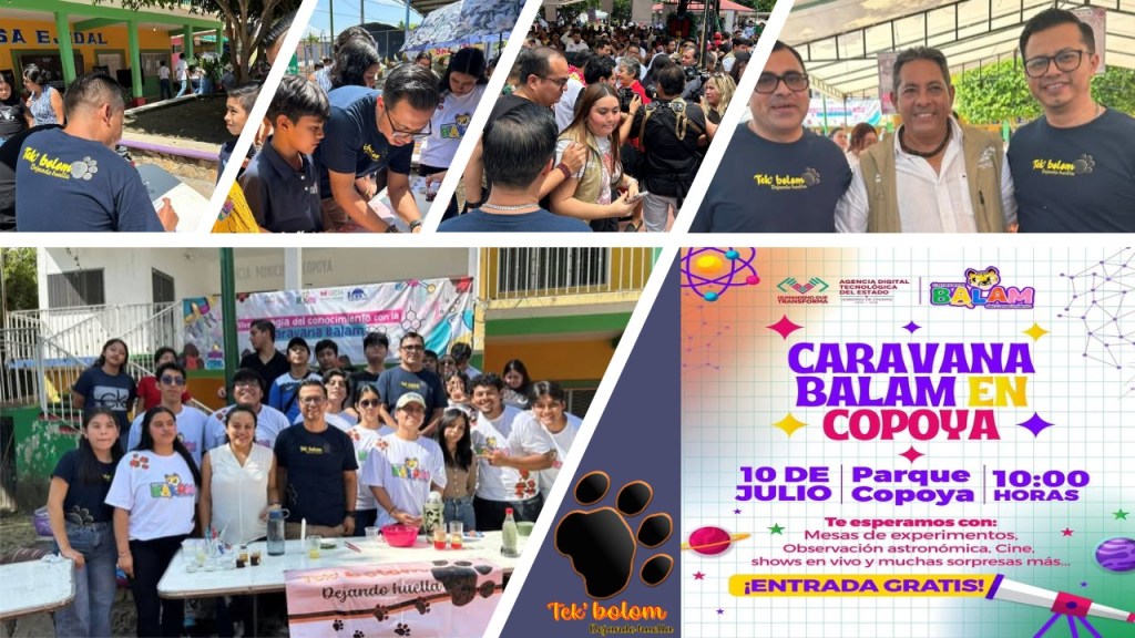 El 10 de julio participamos con La Agencia Tecnológica Digital del Estado y la Caravana Balam en actividades recreativas y de divulgación científica, organizadas en el parque central de Copoya, desde las 9:00 h. Agradecemos a los alumnos de la carrera de Ingeniería en Nanotecnología de la Universidad Politécnica de Chiapas por su apoyo atendiendo las mesas.